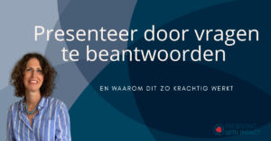 In plaats van zinnen te moeten onthouden of zwaar te leunen op slides, is je enige taak om te reageren op de vraag die je zelf hebt gesteld. Dat maakt presenteren lichter, natuurlijker en veel minder geforceerd.